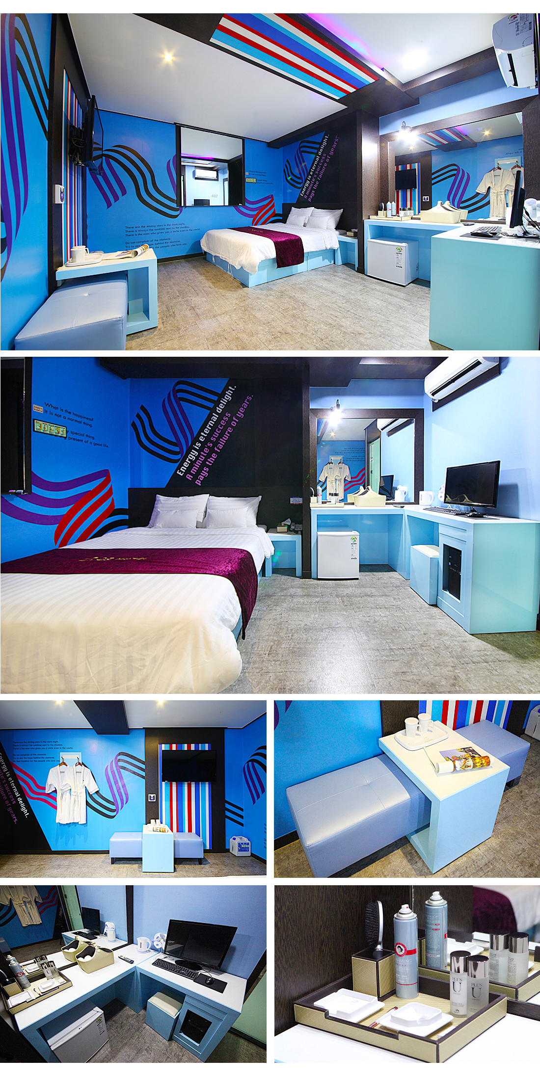 객실집기 : 스파, 침대, TV, PC, 에어컨, 냉장고, 욕실용품, 드라이기, 커피포트